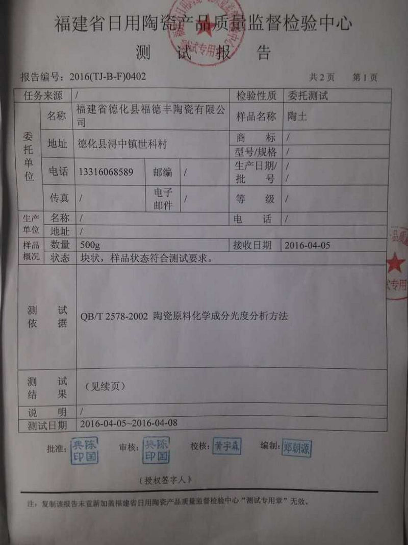 福建省日用陶瓷產(chǎn)品檢測報告